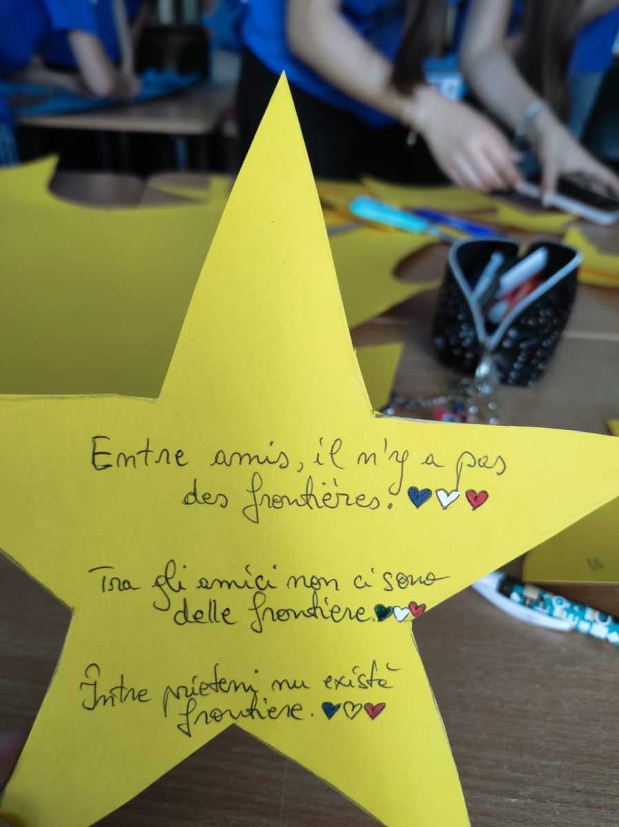 În prima zi a acestei mobilități a început cu câteva jocuri de inter cunoaștere și a continuat cu o lecție în care elevii au învățat câteva cuvinte în limba română. La ora 11, elevii de la HasdEU și colegii lor din Franța au fost oaspeții domnului primar Bogdan Blidariu. După vizita la primărie elevii francezi și români au asistat la o lecție despre istoria Uniunii Europene și au construit o instalație care să celebreze Ziua Europei – 9 mai. Toți elevii implicați în această activitate, au primit tricouri cu sigla Uniunii Europene. Pentru a celebra diversitatea, elevii francezi au fost invitați să descopere și să învețe, cu ajutorul elevilor de la secția bilingv ucraineană, câteva dansuri tradiționale (ucrainene și românești).